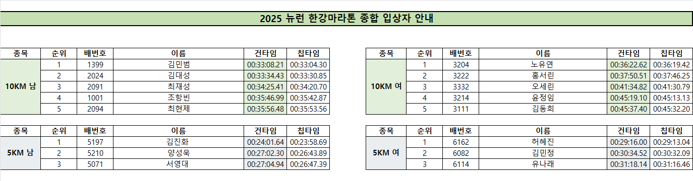 [종합 입상자] 2025 뉴런 한강마라톤 종합 시상 입상자 안내