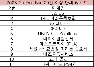 2025 Go Free Run 특전 제공 단체 안내 드립니다.